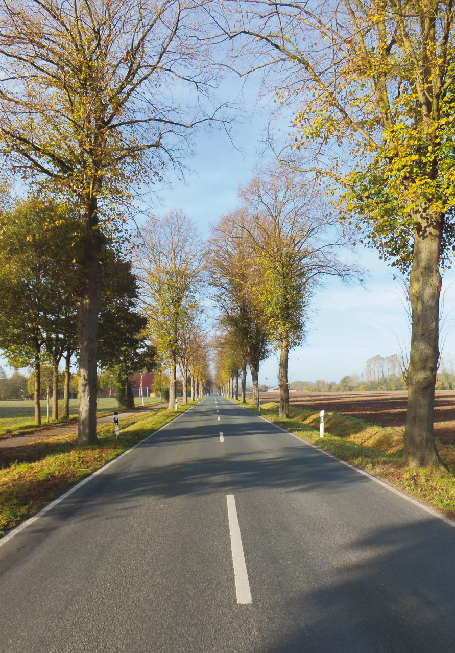 Relativ wenig Alleen gibt es dagegen im bergigen, ohnehin waldreichen Sauer- und Siegerland (Abb. 1). Auch das nordwestliche Münsterland weist eine relativ geringe Alleendichte auf. Nach dem Krieg wurden dort die Bäume verstärkt als Brennholz genutzt und in den 1960er Jahren viele weitere für Straßenverbreiterungen beseitigt. Teilweise versucht man im Kreis Steinfurt gegenwärtig, zumindest einigen Straßen den früheren Charakter einer Allee zurückzugeben. Es gibt aber dort auch Widerstände gegen neue Alleen, etwa durch Landwirte, wenn schmale Wirtschaftswege bepflanzt werden sollen.