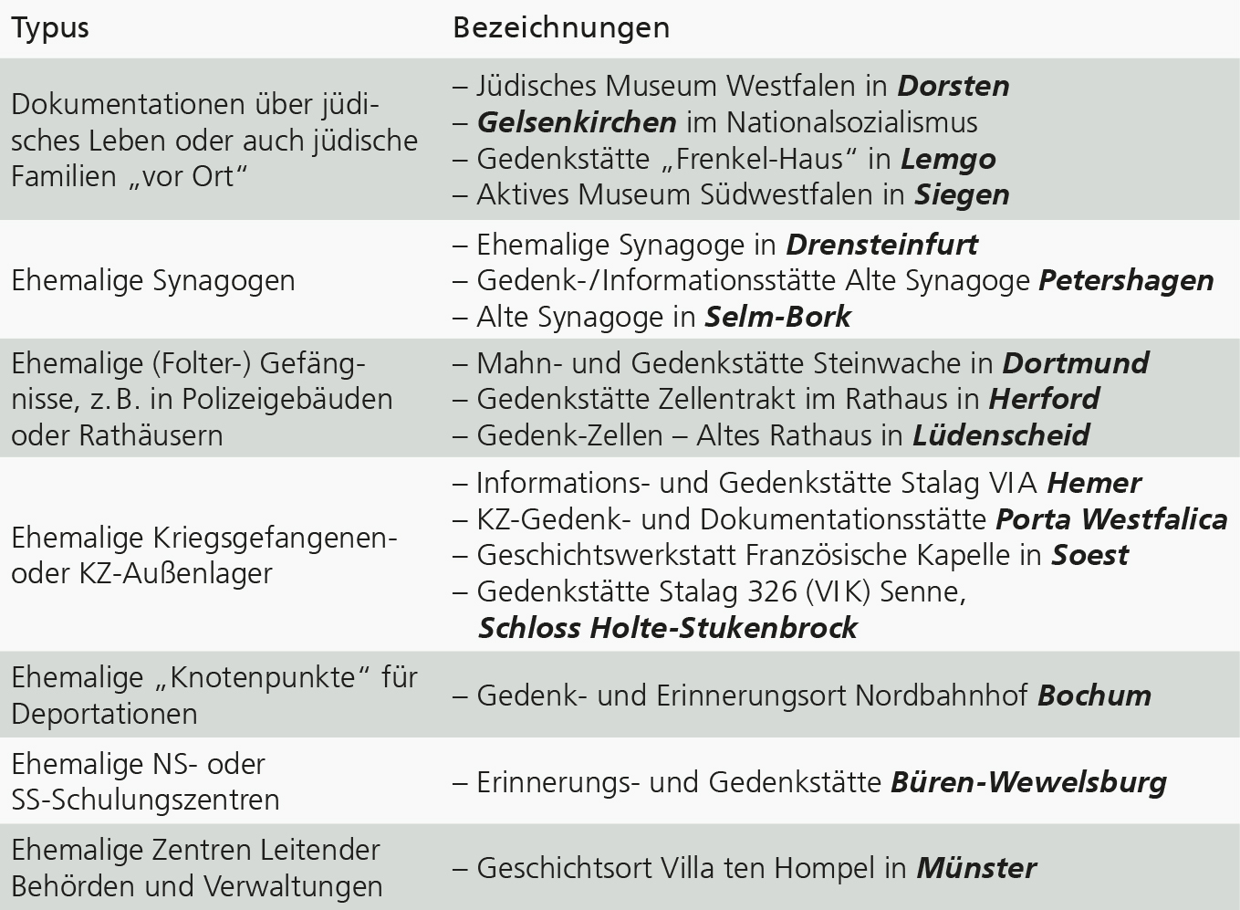 Im Rahmen dieses Beitrags ist es aus Platzgründen leider nicht möglich, alle westfälischen Gedenkstätten ausführlicher zu würdigen. Allein schon das Engagement zahlreicher Vereine und ehrenamtlicher Helferinnen und Helfer hätte dies verdient. Einige Gedenkstätten sollen aber zumindest etwas näher charakterisiert werden.