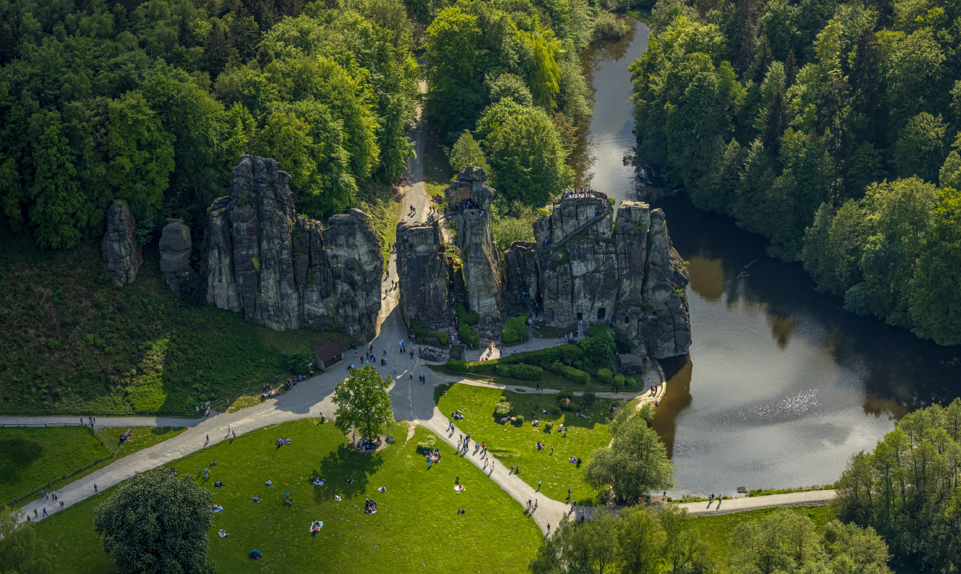Keine 10 km voneinander entfernt befinden sich in der Region Ostwestfalen-Lippe gleich zwei der bedeutendsten und eindrucksvollsten Denkmäler Deutschlands. Während das Hermannsdenkmal im Jahr 2025 sein 150-Jähriges Bestehen feierte, liegen die geologischen Ursprünge der Externsteine bereits mehr als 100 Mio. Jahre zurück.